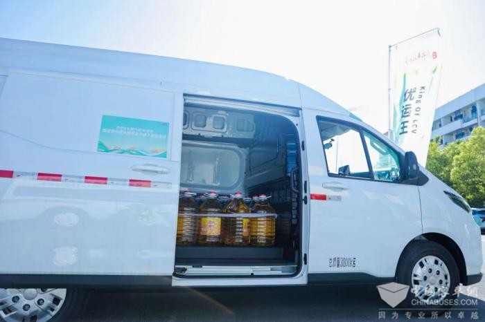 作为一款新能源商用车,聚星纯电动车在绿色高效方面的表现尤为突出。车辆采用高密度磷酸铁锂电池,提供51.5kWh、77kWh和88.8kWh等多种配置,客车版还可以选装100度的动力电池,每公里电费约0.07元,对比柴油车节省60%-70%运营成本,日均200公里年运营330天情况下,8年可节省约数十万元,真正实现了“绿色高效”的核心价值。