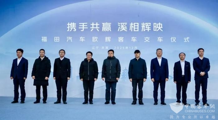 2025年12月29日,福田汽车&本溪客运集团交车仪式在辽宁本溪隆重举行。福田欧辉客车向本溪客运集团交付16台欧辉新能源公交车,助力本溪市打造绿色低碳交通体系,为城市公共交通高质量发展注入绿色动能。