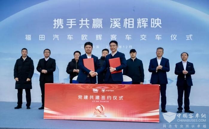 活动现场,福田欧辉客车与本溪客运集团还共同签署了党建共建协议,以党建引领凝聚合作共识,筑牢双方协同发展的组织基础,福田汽车欧辉新能源客车党委书记、总裁韩冬与洪景龙董事长代表双方签署协议。在本溪市政府、福田汽车、本溪客运集团三方领导的共同见证下,韩冬总裁将象征品质与承诺的欧辉车辆模型交付予本溪客运集团董事长洪景龙,标志着本溪市在构建低碳公交体系、推动城市高质量发展方面迈出重要一步。这批新能源公交投运后,将大大提升当地公共交通服务质量,为市民提供更安全、便捷、绿色的出行体验。