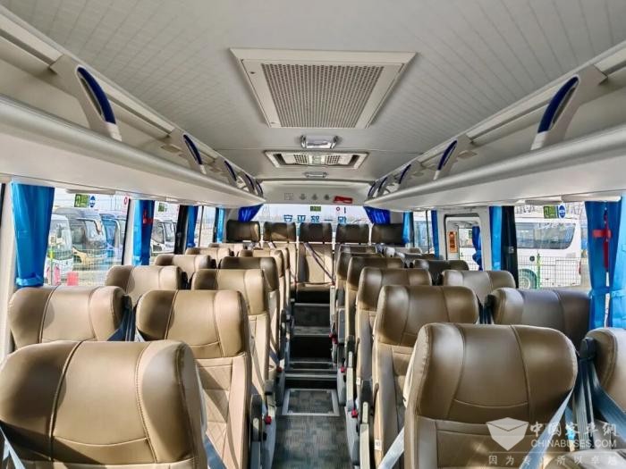 车辆载客能力突出,运营灵活多元。在8米级车身基础上优化布局,座椅排布科学,在高一级配置下可实现35+1座,无等级配置可达37+1座,成为同长度车型中载客能力领先的产品。针对多元运营需求,车辆支持选装中门并取消安全门,更好适配公交化运营模式,提升上下客效率与场景适应性。