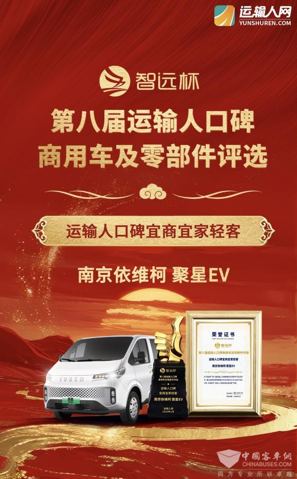 2026年1月16日,“智远杯”口碑商用车及零部件评选榜单隆重揭晓。依维柯聚星纯电动车凭借覆盖全场景的硬核实力与深入人心的用户口碑,于激烈竞逐中脱颖而出,一举斩获“运输人口碑宜商宜家轻客”重量级荣誉。这不仅代表着业界对聚星卓越产品力的权威认证,更是市场对其创造用户综合价值能力的充分认可。
