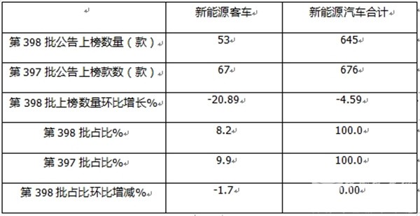 表3,根据工信部第398批公告统计数据,按技术路线划分,各车型上榜数量占比及占比环比增减: