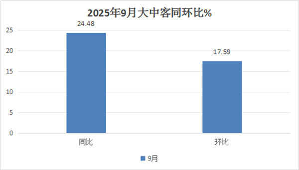 三是2025年9月各行业对大中客车的需求动力环比增强。