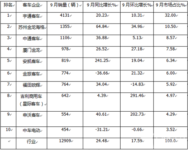 9月大中客车:“金九”坐实!宇通霸榜,海格\中通分列二三 安凯领涨