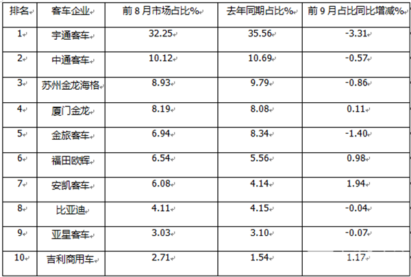 作为客车行业传统旺季市场的“金九”,我国大中型客车市场如何?