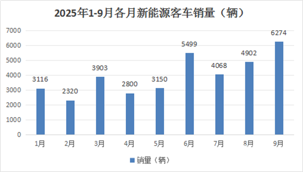 根据中国客车统计信息网数据,2025年1-9月各月我国大中型新能源客车销量: