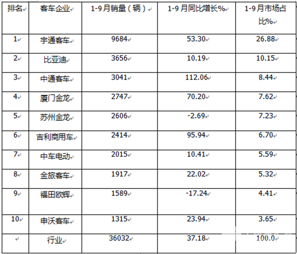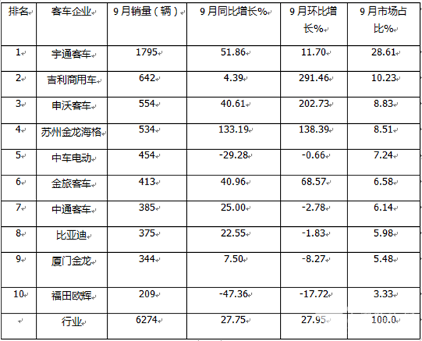 9月新能源客车:宇通强势夺冠,竞争格局生变,吉利\申沃挺进三甲