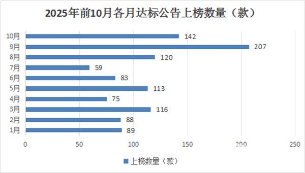 根据交通部数据,2025年1-10月各月(分别依次对应第372批---第381批)公路客车达标车型公告上榜数量统计如下: