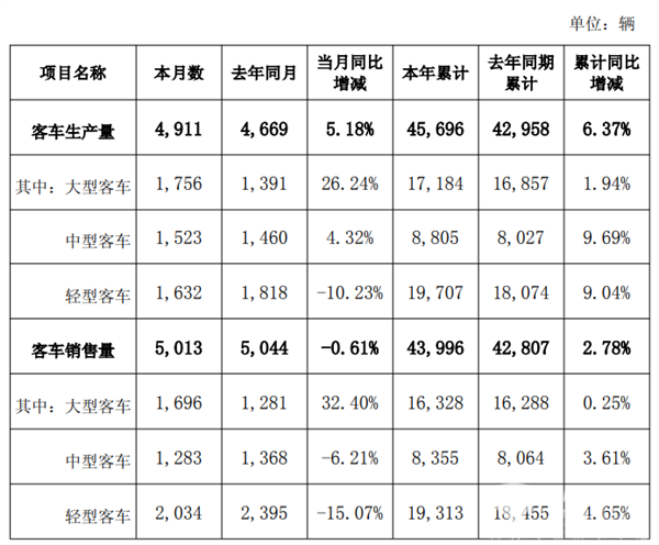 2025年12月5日,金龙汽车(600686,含厦门金龙、苏州金龙及厦门金旅,下同)发布公告,2025年11月份产销数据快报显示,具体如下: