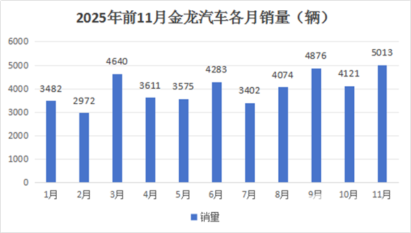 下面笔者从市场销量层面来简要分析一下金龙汽车2025年11月的主要销量特点。