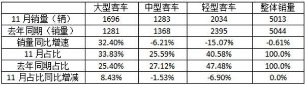 11月金龙汽车:销5013辆创年内各月新高 大客表现抢眼