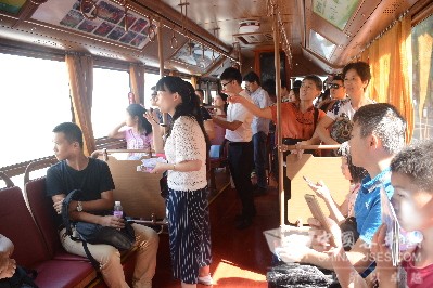 活动当天,参加活动的市民统一搭乘观光专线车辆-红色仿古铛铛车,市民网友一路欢声笑语,不断用相机透过车窗拍摄沿途的美景。