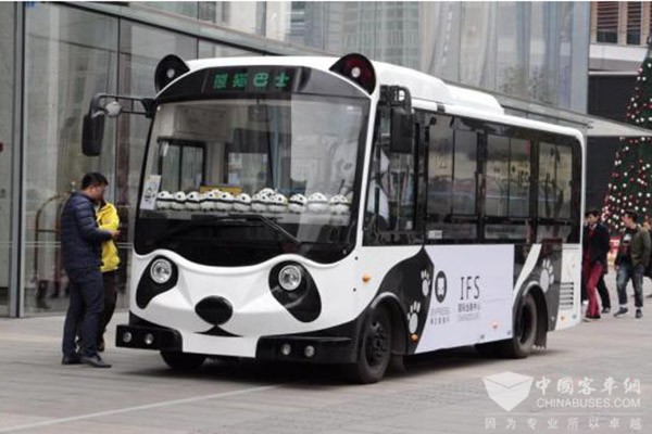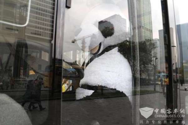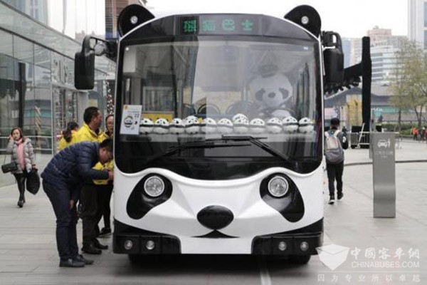 2016年11月24日,一辆“熊猫巴士”亮相成都春熙路,吸引路人眼球。这辆巴士其实为一辆景区售票车,除了车身,司机也换成了一只大熊猫玩偶。