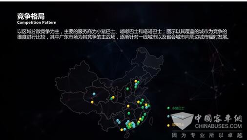 互联网巴士市场的竞争对手以区域分散竞争为主,以一线城市地方品牌居多,缺乏行业领导品牌。由于行业进入门槛低,服务商众多且竞争激烈,市场呈现出类完全竞争市场局面。