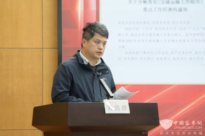 局综合计划科解读《宜昌交通2025年“重大项目建设年”活动推进工作方案》。副局长蒋龙交办《交通运输工作会报告》2025年重点目标与工作任务。局党组成员、纪检组长贾胜交办宜昌交通2025年十件发展大事和十项民生实事。局党组成员、总工程师望明交办宜昌交通2025年“重大项目建设年”重点项目建设任务。市交通运输局领导班子成员及各县市区交通运输局、局直单位、局机关科室主要负责人上台认领2025年重点工作任务,并对领办工作任务逐一表态发言。