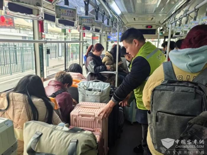 出行便捷、服务温馨的背后,是无数公交人的坚守与奉献。春运一线,400余名“公交绿”志愿者驻守火车站首末站、金垭机场等客流量密集的地方,坚守在莲花湖湿地公园、梨树坪湿地公园等重要游玩点位提供导乘咨询、行李搬运、特殊群体帮扶等服务。设立“艳阳天志愿服务队”车厢,免费发放饮用水、常规药品等物资,用微笑与行动传递城市温度,让春运归途成为暖心旅途。