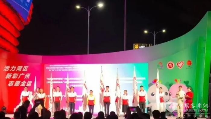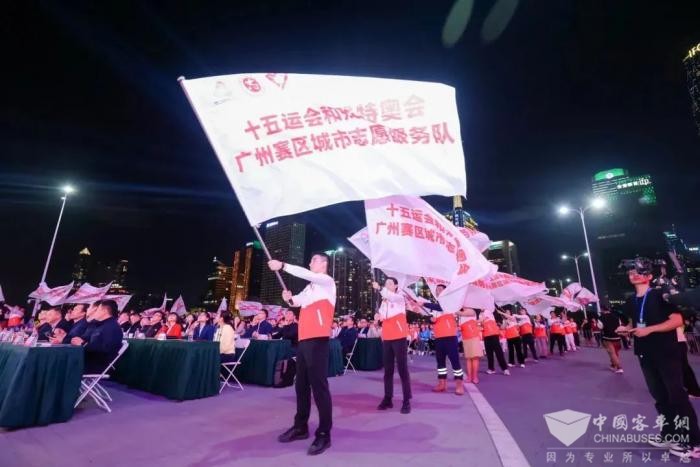 活动现场掌声不断,包括广州公交集团在内,来自市委社会工作部、市委政法委、市直机关工委等单位的24支新彩广州全民志愿行动志愿服务队接过象征使命的志愿服务队旗,标志着十五运会和残特奥会广州赛区新彩广州全民志愿行动正式落地运行。
