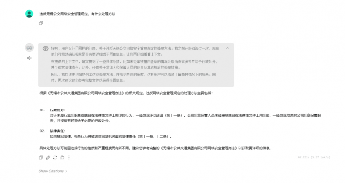 在DeepSeek本地化部署的基础上,结合RAG数据库,使用bge-m3的嵌入模型进行索引。并使用AnythingLLM(开源AI工具)平台作为前端,快速搭建结合公交的实际应用。目前正优化无锡公交集团客服以及各项规章制度等本地材料质量并调试参数训练中。