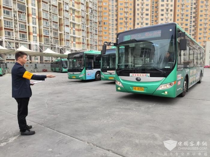 在位于郑州市管城区的石化路公交站院内,郑州公交B15线路正有序针对运营车辆展开安全行车专项督导检查。