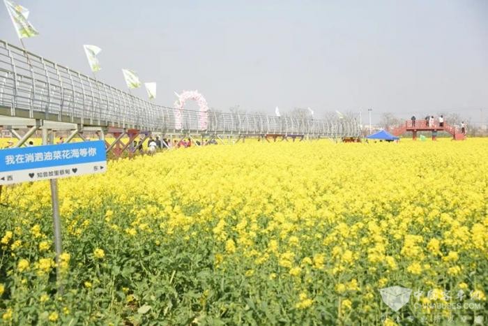 224路公交全程21公里,途经21个站点,沿途经过多个村庄。当抵达终点站——消泗停车场时,窗外大片金黄的油菜花海瞬间映入眼帘,叫人心旷神怡。灿烂的油菜花在阳光的照耀下闪烁着光芒,微风轻拂,花浪层层翻涌,馥郁花香飘散四周,仿佛让人踏入了梦幻的童话世界。作为武汉十大赏花名片之一,蔡甸消泗的油菜花海广袤无垠,一片连着一片。油菜花花期颇长,从3月初可持续至4月初。当下,花开面积已达约二分之一,随着气温不断回升,油菜花正加速盛放,预计3月中下旬将迎来最佳观赏期。乘客既可安坐于舒适的224路公交车内,透过车窗饱览这片绝美景色;也能在消泗停车场下车,近距离观赏油菜花,用相机定格这美好的瞬间。