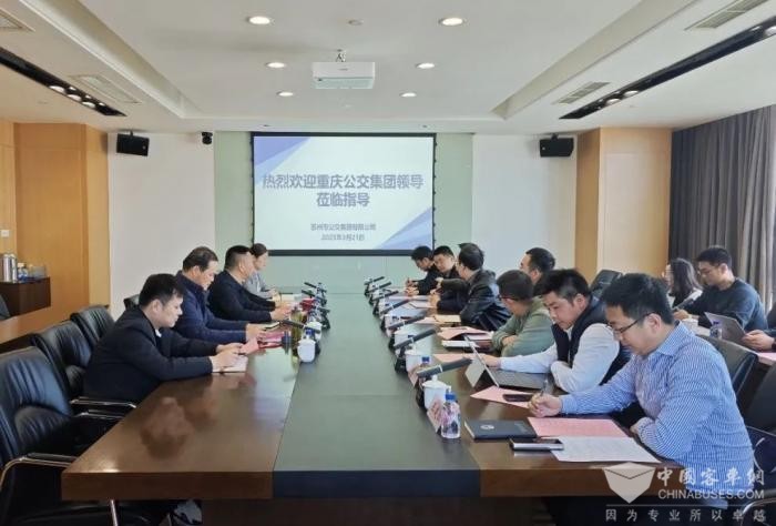 2025年3月21日,重庆市公共交通控股(集团)有限公司副总经理周正带队,来到苏州公交集团开展调研交流活动。苏州公交集团党委副书记、副总经理朱洪亮及相关部门、单位负责人陪同。