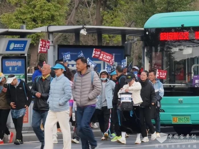 不到凌晨四点,公交驾驶员们已早早来到车场,检查车况后按计划到达各自指定位置待命,负责将参赛选手接送到起点,将志愿者、医疗队疏散到城市各个方向,确保没有滞留现象。现场的工作人员耐心为选手们解答疑问,提供交通指引。