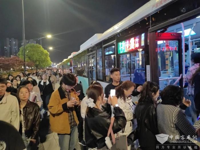 晚上9点半,旋律渐息,公交人的“重头戏”才正式开始。公交车辆早早地在专用通道列队等候,现场10余名工作人员引导观众快速登车。