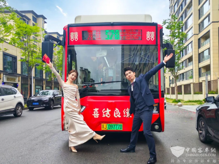 2025年5月5日,正值五一黄金周假期尾声,盐城街头迎来一场别具匠心的婚礼——新郎含章与新娘十一选择“520”号定制公交婚车作为迎亲车队,以低碳环保的方式开启人生新篇章。这场婚礼将环保时尚婚庆理念与节日氛围巧妙融合,构成了假期中一道温馨而独特的城市风景线。