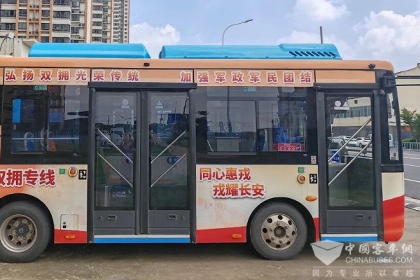 八一建军节之际,无锡公交集团与惠山区长安街道联合打造的长乐巴士邻居“双拥专线”以全新姿态启程。车身披挂迷彩涂装,车身张贴“弘扬双拥光荣传统 加强军政军民团结”标语,化身为移动的双拥宣传阵地,将拥军优属的温情融入城市脉络。