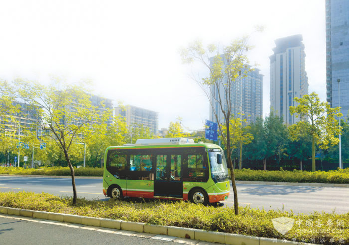 【崭新的新能源公交车成为城市流动的风景线】