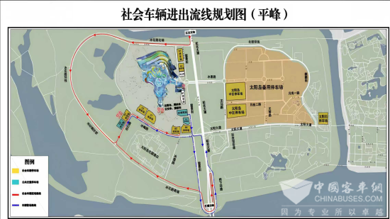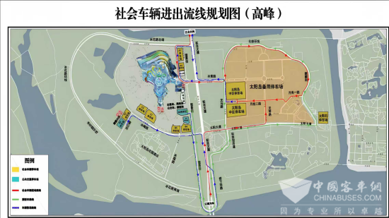 2. 景区停车场饱和后,启用“远停接驳”入场流线,社会车辆停放在太阳岛中区停车场,换乘免费接驳车前往景区。