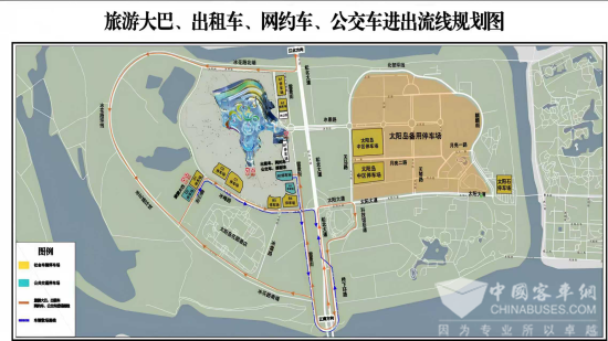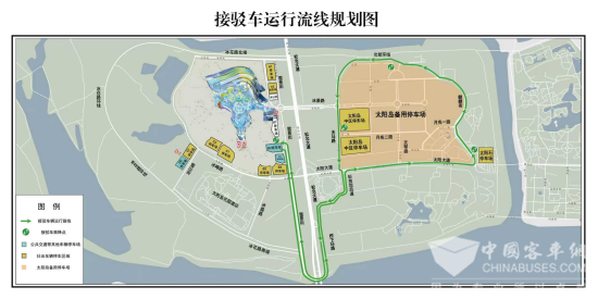 1.接驳点:共设置4处接驳站点,分别为太阳石停车场、北部环线中段、太阳岛中区停车场、B2停车场,按照以下流线循环往返进行接驳: