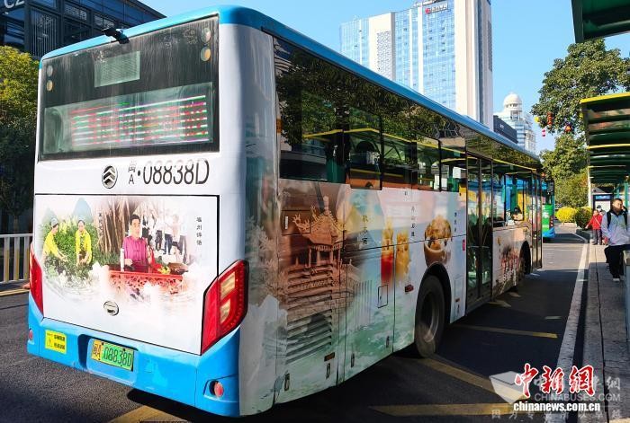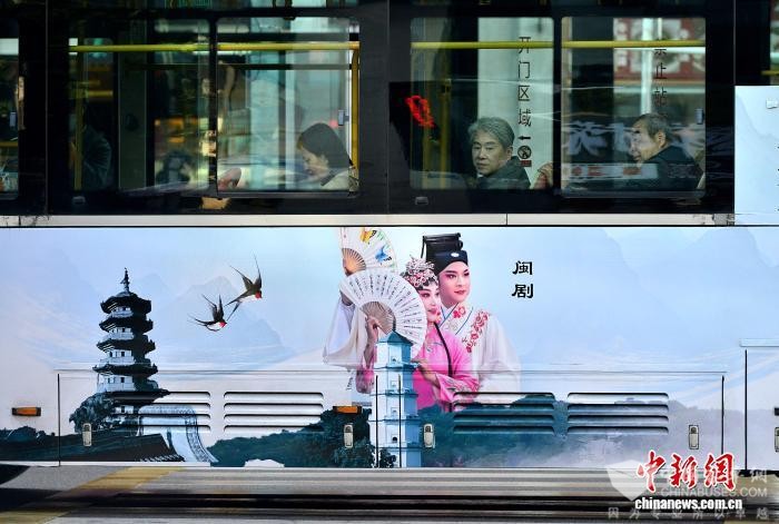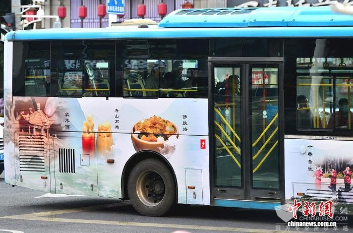 2026年1月8日,喷上精美非遗图案的公交车行驶在福州街头。中新社记者 张斌 摄