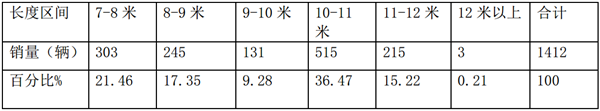 特点一、10-11米车型占据权重最大