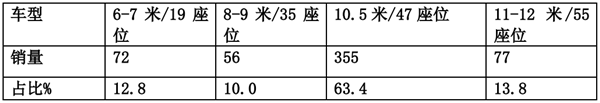 从上表可以看出,在天津区域市场,2019年1-5月,10米5左右的团体客车车型占据了团体客车市场超6成的份额。