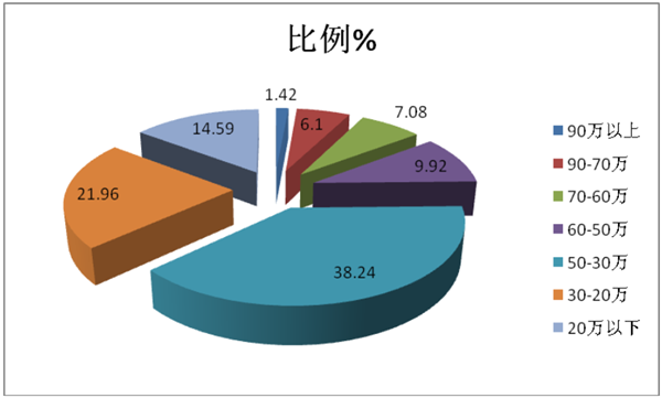 特点五、30-50万中档客车占据的权重最大