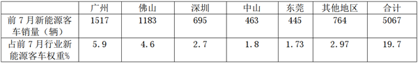 根据上牌信息,2020年前7月,广东区域新能源客车销量5067辆(行业前7月新能源客车销量为25723辆),占据全国近2成的权重: