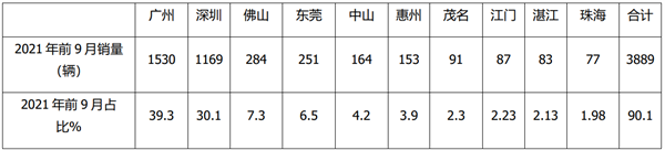 - 2021年前三季度广东区域新能源客车市场特点分析