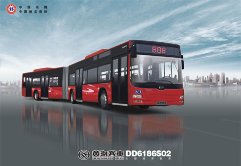 据了解,此次常州采购的DD6186S02,是黄海客车从德国MAN公司引进的18米四门低地板BRT客车,也是德国MAN公司最新推出的铰接客车产品。客车车身造型采用欧洲客车设计中最新流行的锋锐线条设计理念,外型阳刚流畅,曲线饱满。大面积前后风窗玻璃向上顺延到车顶,不仅使整车具有很好的视觉效果,也使整车显得挺拔大气。同时,该车采用复合式承载结构,并运用轻量化设计技术,不但使该车具有一定的超载能力,同时在保证整体强度条件下最大限度地降低了整车的自重,比国内同类型车至少减轻重量700kg左右。立式后偏置发动机布置形式,在实现了驱动轴后开门的同时,也达到了尽最大可能增加车内可利用空间的目的,是目前世界上客车技术中最先进、合理的布置方式,代表城市客车技术的发展方向。另外,整车大量使用复合材料,前后围覆盖件广泛采用SMC,油箱采用高强度塑料,在大大降低整车重量的同时,也促进了国内新材料领域的发展,完全符合当今社会节能减排的趋势。