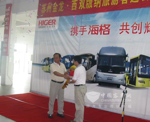 2009年6月16日,云南西双版纳旅游客运汽车有限公司总经理朱雨田、副总经理唐彦生、总经理助理刘泽新一行来到海格客车厂,提取2009年预定的72台中型客车。缘何西双版纳旅游客运在大环境不利的背景下采购如此大批量的客车?为此,专访了朱总一行: