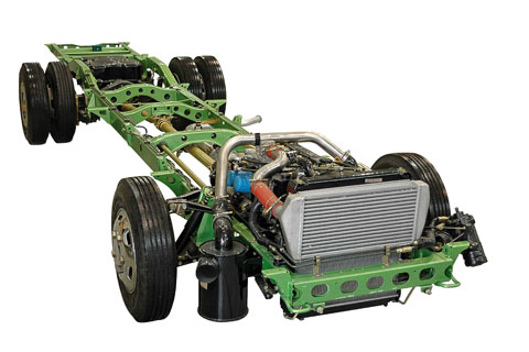 4、弯纵梁盒式车架,重心低,满足两级踏步要求;