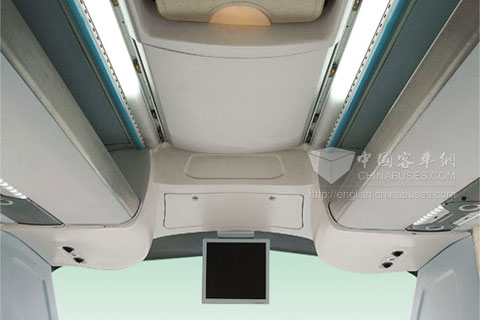 超低耗能 铝质乘客门、行李仓门和全承载车身结构都降低了车身重量,为节能打下基础; 精心布置座椅排列,使高一级座位数达51+1+1,降低了平均油耗; 电磁离合器,可根据发动机水温和中冷器出气管温度调整发动机风扇转速,帮助客户节油; 舒适驾乘 发动机仓、后桥后先进的消音隔热处理,降低车内噪声和传热,使驾乘更惬意; 卫生间下沉式设计节省了车内空间,使座椅间距更加宽敞同时视野更开放; 导索式电动前遮阳帘,也使视野更开阔; 6个大跨据气囊提高了客车的侧倾刚性,转弯时同样平稳舒适; 维护便捷 前检修门可向上翻转打开和仪表台复式结构,使内部部件一目了然,检修更方便; |