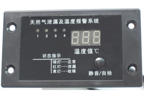 天然气泄漏及温度报警系统针对燃气汽车而设计开发的,同时也适用于各种油改气汽车。天然气泄漏及温度报警系统由天然气泄漏探测器、温度传感器、报警主机组成。天然气泄漏探测器安装在危险区(存在天然气的部位),温度传感器安装在发动机舱或天然气储气罐舱,报警主机装在仪表台。在天然气泄漏达到设定的报警浓度时,进行声、光报警;主机面板可实时显示检测到的温度数值,并在温度超过设定值时进行声光报警。多个探测器组成的系统,对应探测器的红色报警灯可指示具体的气体泄漏点。探测器检测到有燃气泄露会传递信号给报警控制主机,控制主机发出声光报警,以便采取措施,防止事故发生。当探测器或温度传感器出现故障或和报警主机连线故障时,能自动进行故障报警。面板集成自检按钮,可在任意时刻检查报警主机的工作状态。