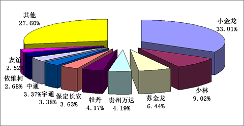 表一:2007年小型客车销售量前10名企业排名表 单位:辆