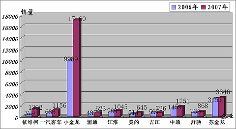2、厦门金龙联合工业有限公司去年小型客车销售66辆,今年累计销售541辆,同比增长率为720%。广州俊威客车有限公司小型客车去年没有销售量,今年累计销售861辆,理论增长率为正无穷大。