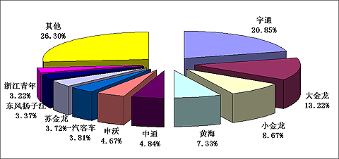 表一:2007年大型客车销售量前10名企业排名表 单位:辆