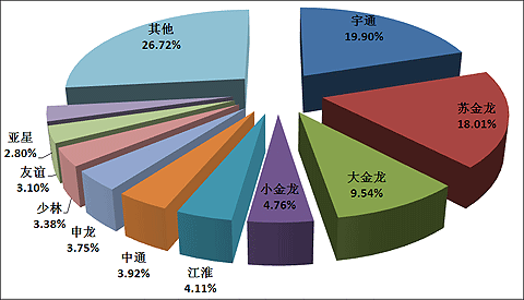 注:去年排名参照完美作业网有免费视频2007年中型客车销售TOP10。