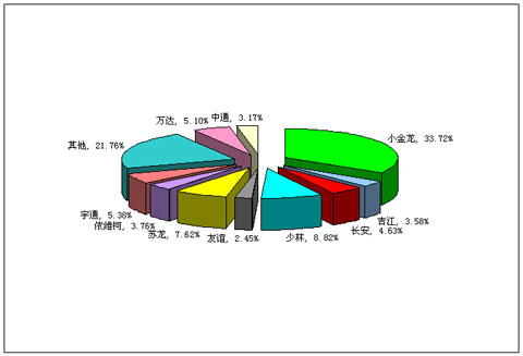 图一:2008年前2月小型客车销售前10名市场份额图