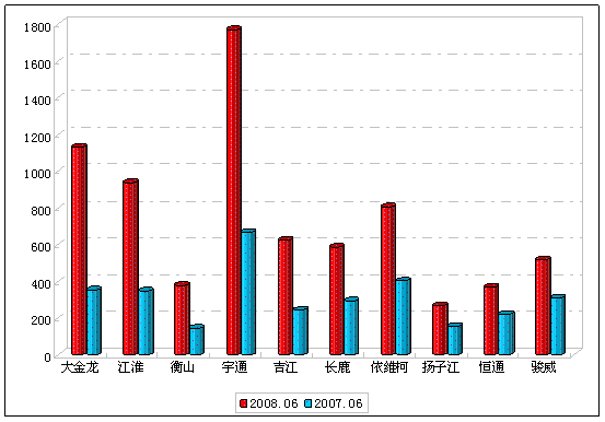 图一:2008年前6月小型客车销售增长前10名销量图