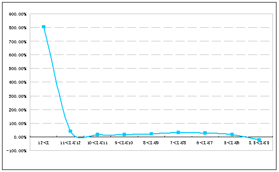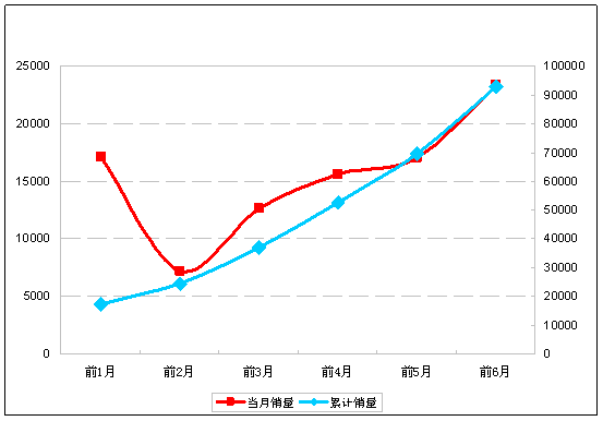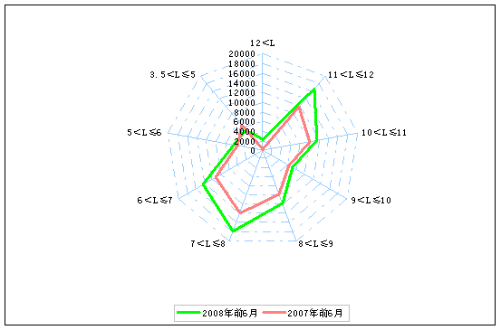 表一:2008年前6月行业各区间产品销量数据 单位:辆